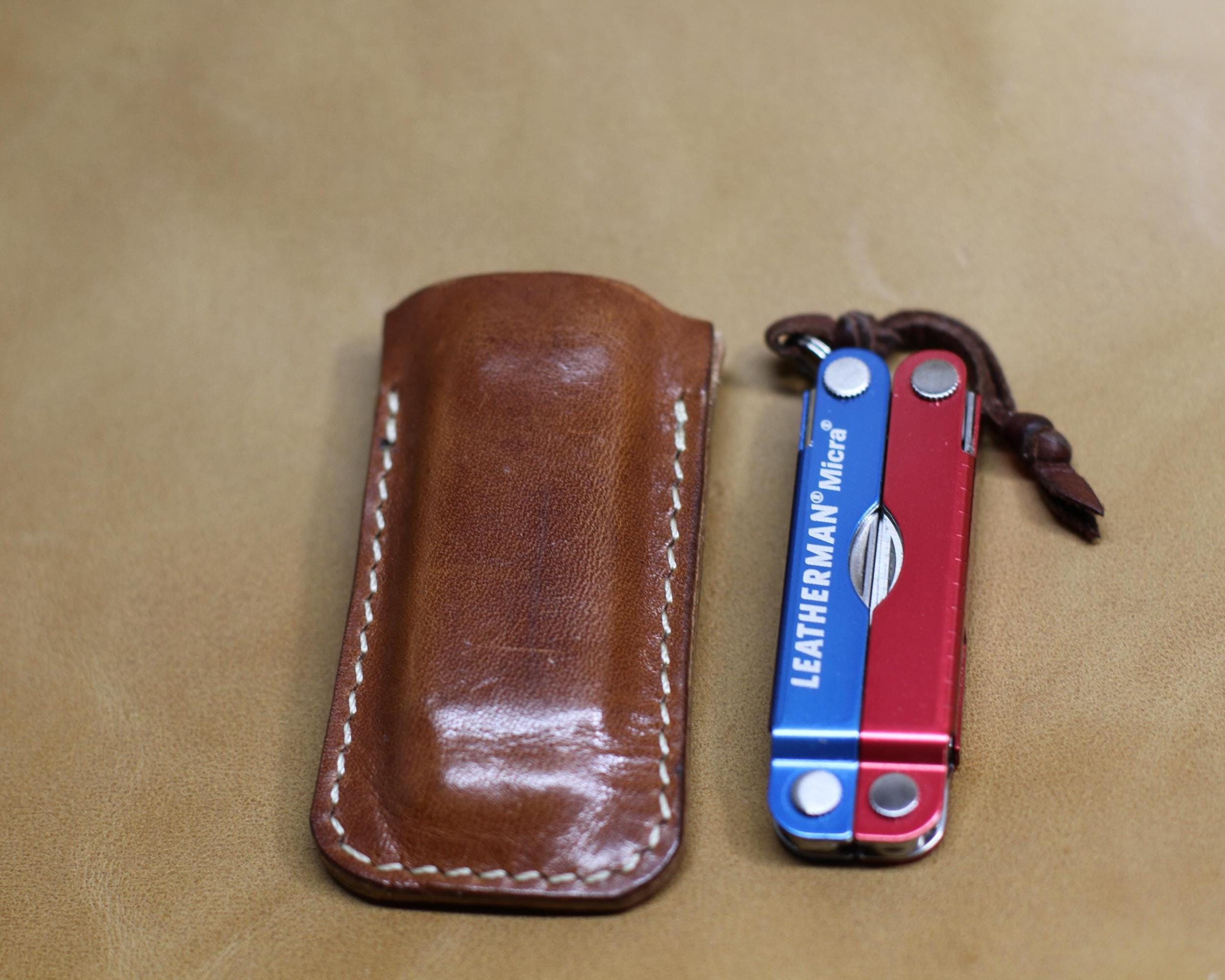 This handcrafted leather slip sheath is specifically designed for the Leatherman Micra. If you carry a Micra, you know it’s a perfect pocket sized multi-tool, but it can easily get scratched and doesn't always feel great given its edges. This sheath provides a slim, protective barrier that keeps your multi-tool pristine smoothing out those edges and making for a easier carry.
