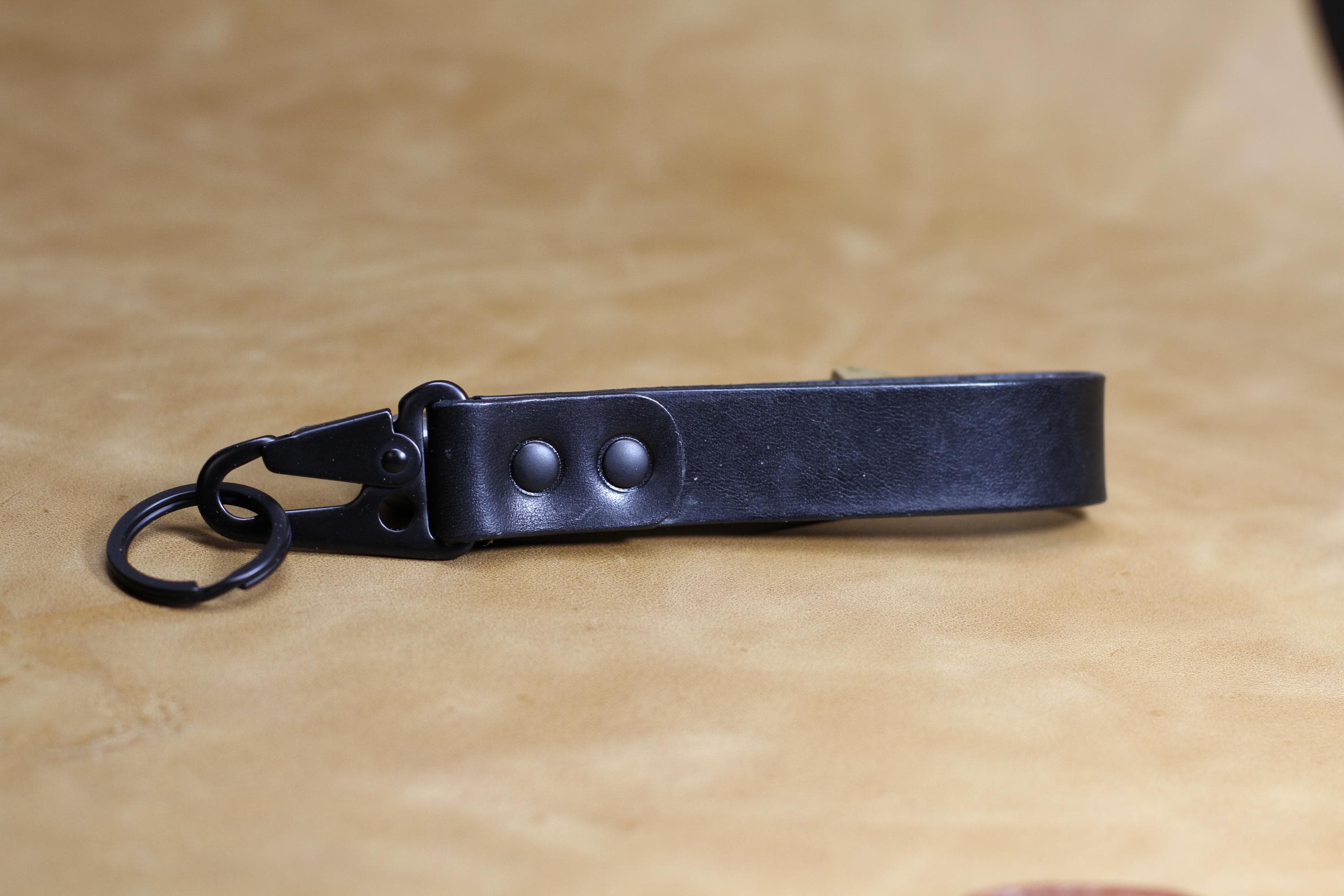 Sleek minimal aesthetics and modern EDC needs, this key holder is engineered for quick access. The spring-loaded lever allows you to easily snap your keys onto a belt loop, D-ring, or bag strap with one hand, while the leather body provides a comfortable, secure grip thanks to permanent rivets.